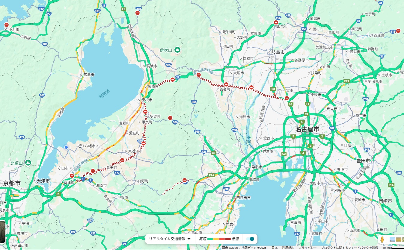 1/22 午前7時、名神高速 滋賀栗東~一宮 通行止め
